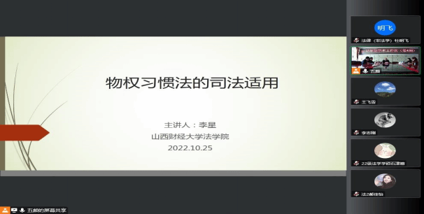 10月25日下午,公司通过线上线下相结合的方式举办了“永利3044集团官网学术工作坊”第四期活动。本次活动的主题是《物权习惯法的司法适用》,主讲人为李星博士。活动由永利3044集团官网副经理任中秀主持,山西师范大学李志刚教授、山西大学曹笑辉博士、公司李彦芳副教授参加与谈。
