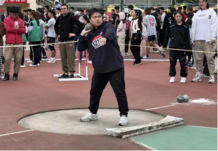 同一时刻,铅球男子组的比赛进行的热火朝天,王靖哲、谭运鹏、张子豪三位同学,站在操场上,手中沉甸甸的便是他们力量的证明,聚力一抛的瞬间,不仅寄托了我们的期望,更是他们辛勤努力的见证。