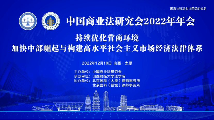 2022年12月10日,中国商业法研究会2022年年会暨“持续优化营商环境,加快中部崛起与构建高水平社会主义市场经济法律体系”学术研讨会在线上顺利召开,会议全程提供高清网络直播。本次年会由中国商业法研究会主办,永利3044集团官网承办,北京盈科(太原)律师事务所、北京盈科(晋城)律师事务所协办。来自高等院校、科研院所、实务部门的专家学者和法律实务工作者共408人出席本次会议,线上累计观看直播人数达14907人。会议包括开幕式、主旨发言、分论坛和闭幕式四个环节。