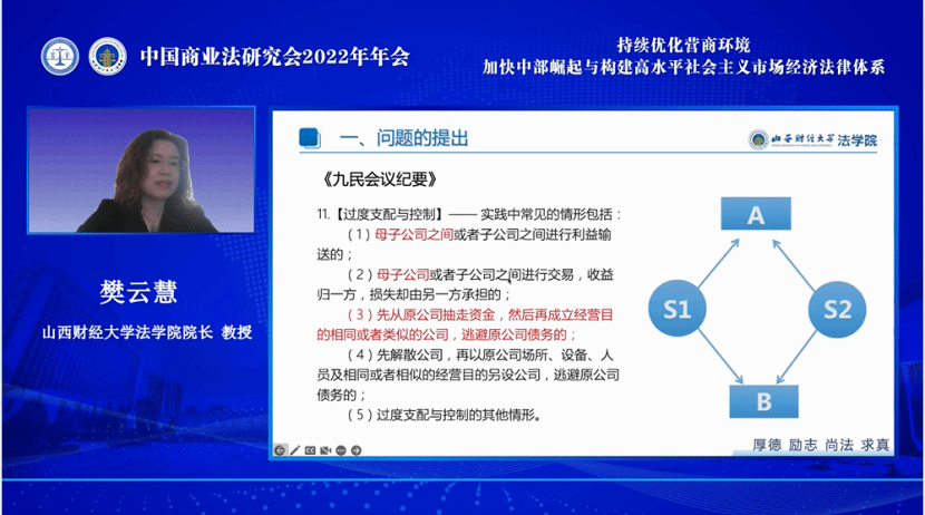 永利3044集团官网经理樊云慧教授以“公司法人格否认的反向适用”为主题,列举了公司法人格否认反向适用的几种情形,并指出公司法人格否认的反向适用应当规定消极的条件,如存在可替代的救济方法或反向否认会造成公司债权人和无辜股东利益受损时,应拒绝公司法人格否认的反向适用,以此平衡股东的债权人与公司的无辜股东之间的利益关系。