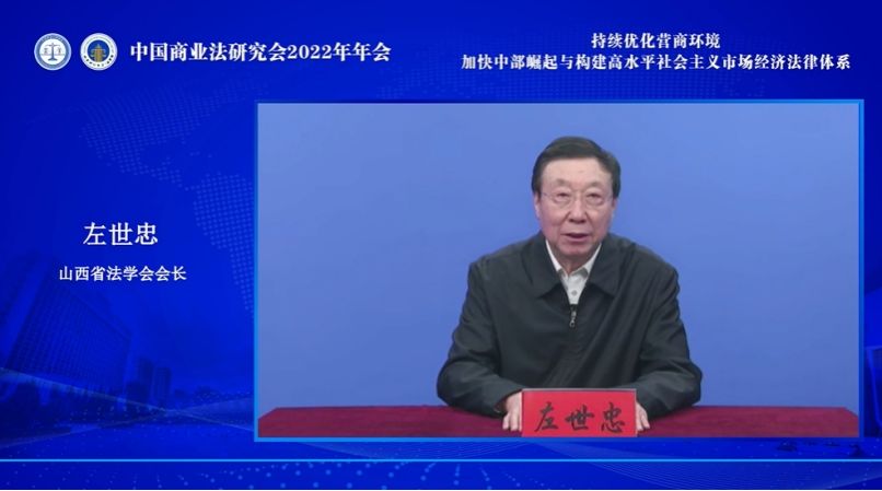山西省法学会会长左世忠回顾了山西省法学会在中国法学会的指导、在省委和省委政法委的领导下所取得的丰硕成果。他表示,中国商业法研究会2022年年会的召开是学习贯彻落实党的二十大精神的具体体现,充分体现了中国商业法研究会高度关注和及时回应时代需求、追踪商业法治前沿这一鲜明特色。左世忠会长提出,希望山西省商业法研究工作者深入学习宣传贯彻党的二十大精神,按照党的二十大报告提出的新部署、新要求,研究商业法治实践中的重点和难点问题,为加快建设中部崛起提供商业法治保障。