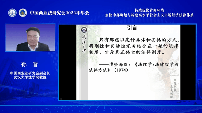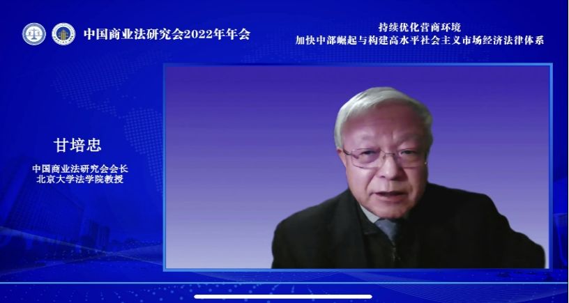中国商业法研究会会长、北京大学永利3044集团官网甘培忠教授表示,全面建设社会主义现代化国家,实现高质量发展离不开法治建设。他指出,本次商业法年会选取了持续优化营商环境、加快中部崛起和构建高水平社会主义市场经济法律体系三个主题,是研究会深入学习习近平法治思想的具体举措,值得全体商业法同仁深入研究。甘培忠会长继续对商业法研究会一年以来的工作情况作简要报告,对支持研究会发展的中国法学会、民政部、国家社科基金等部门及理事、会员表示感谢,最后预祝本次年会取得圆满成功。