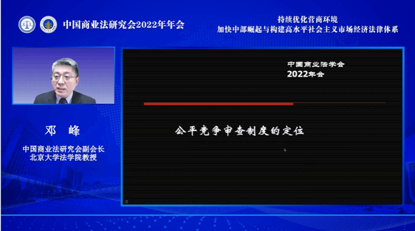 中国商业法研究会副会长、北京大学永利3044集团官网邓峰教授以“公平竞争审查制度的定位”为主题,提出反垄断法修订后实际上将公平竞争审查制度置于同反垄断制度相平行的地位,但公平竞争审查制度与备案审查制度、营商评估规则等制度之间存在何种根本性的区别,还有待于进一步明确的空间,希望有兴趣的同仁可以一同为公平审查制度的建设作出贡献。
